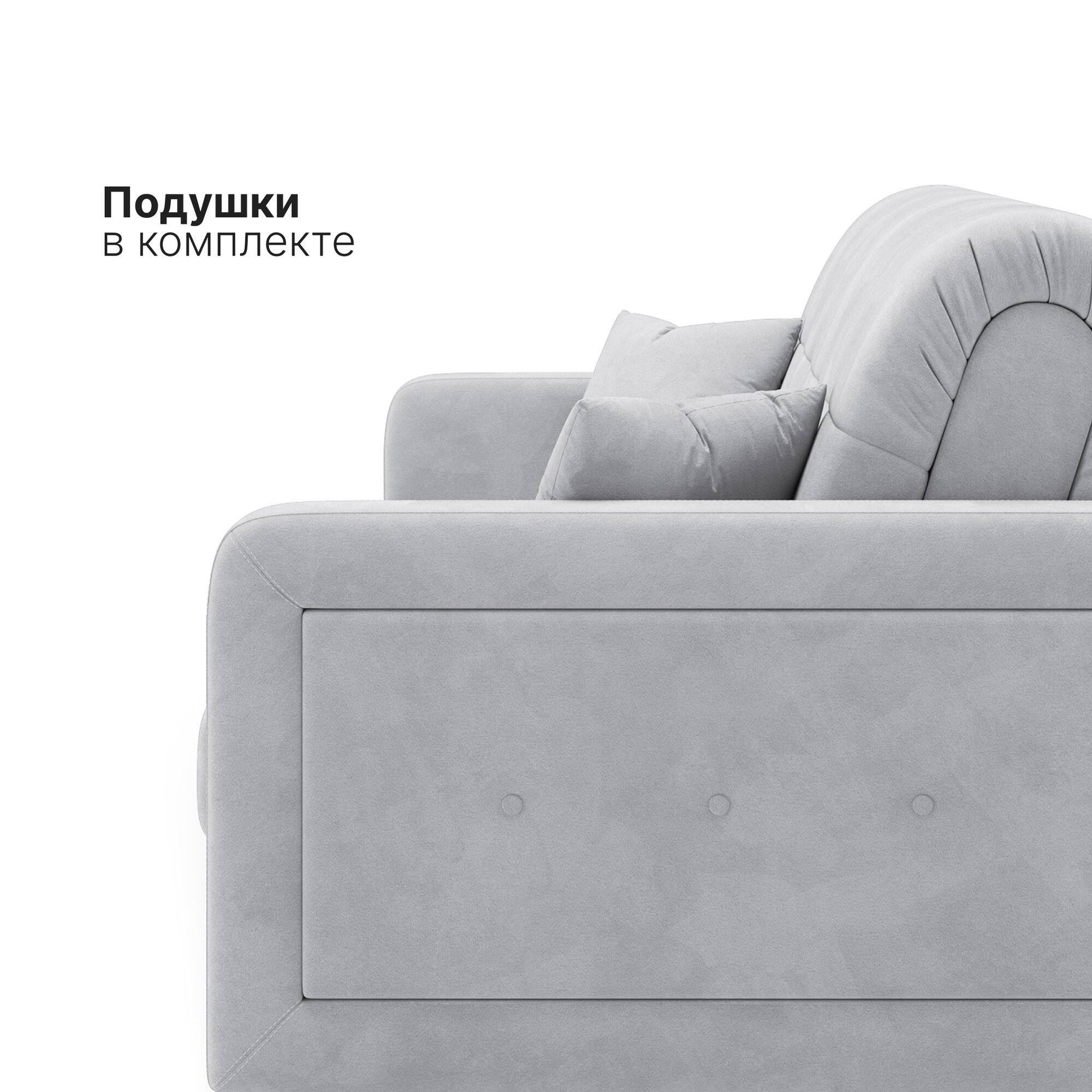 Диван-кровать раскладной Прямой, Аккордеон, независимые пружины, 140х200 спальное место, велюр светло-серый информация: