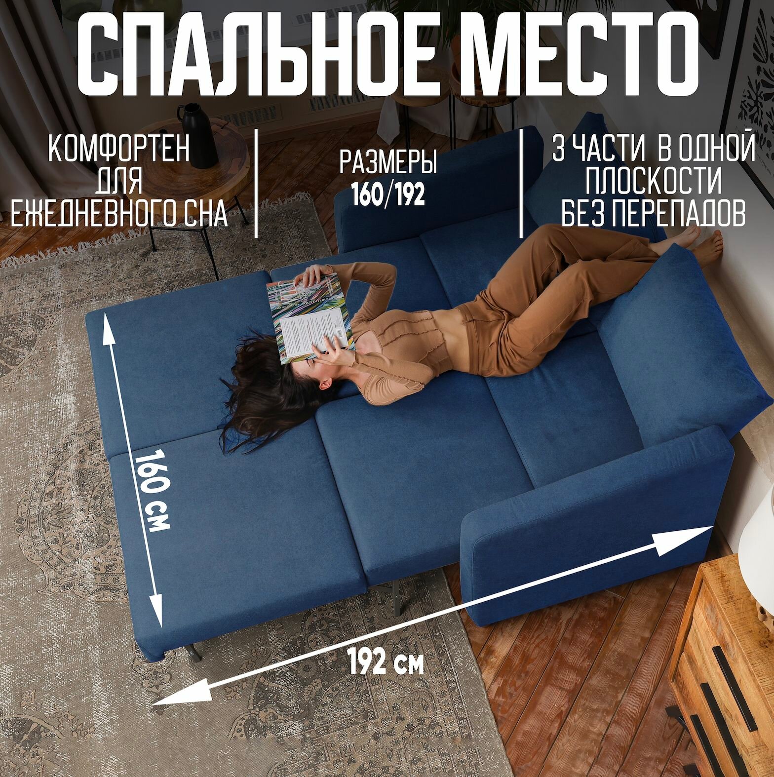 10 цен на GLAM Диван раскладной COMFO в зал синий 185*85*87