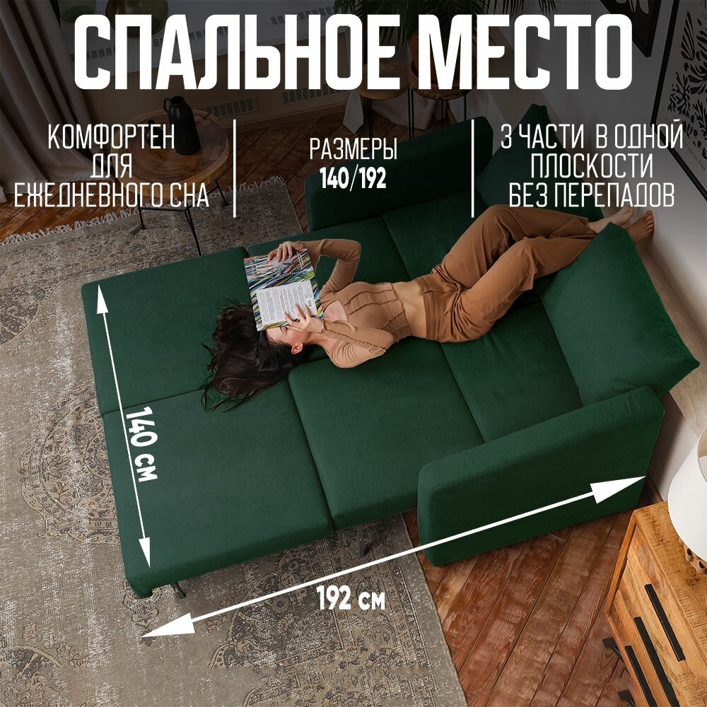 GLAM Диван раскладной COMFO в зал зеленый 175*85*87 54 000 ₽