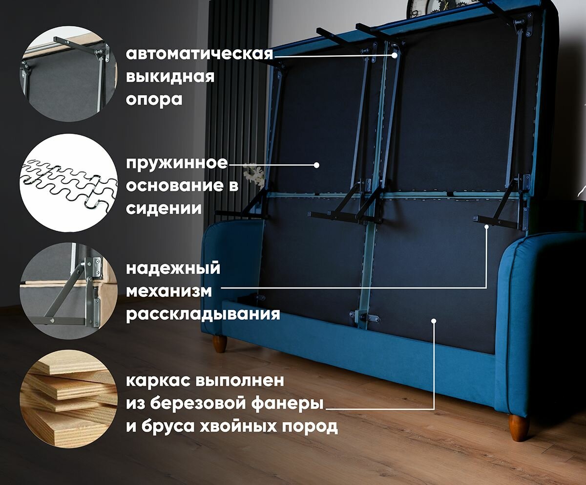 10 цен на GLAM Диван раскладной COMFO в зал синий 175*85*87