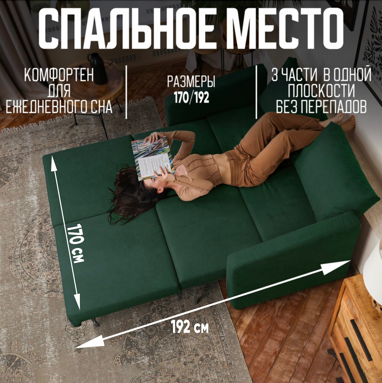 10 цен на GLAM Диван раскладной COMFO, зеленый 195*85*87