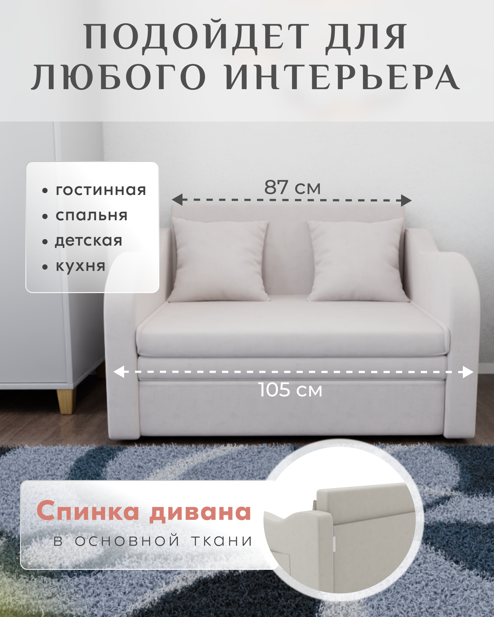 Диван Бали прямой, размеры 105x75x87 см, Велютта люкс 01. Белый. информация: