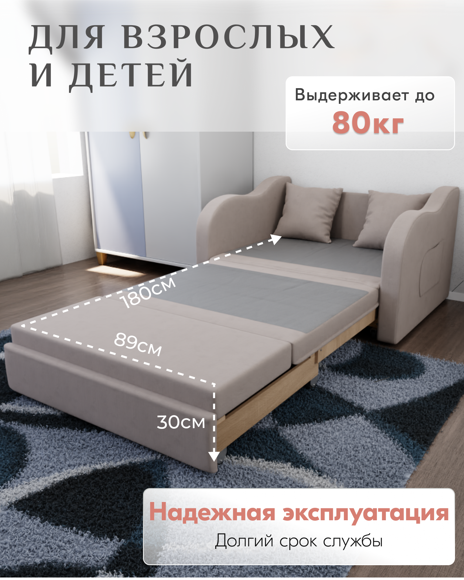 Прямой диван Малютка 2 Белый Велюр, выкатной, 150х84х89 см, с ящиком для белья