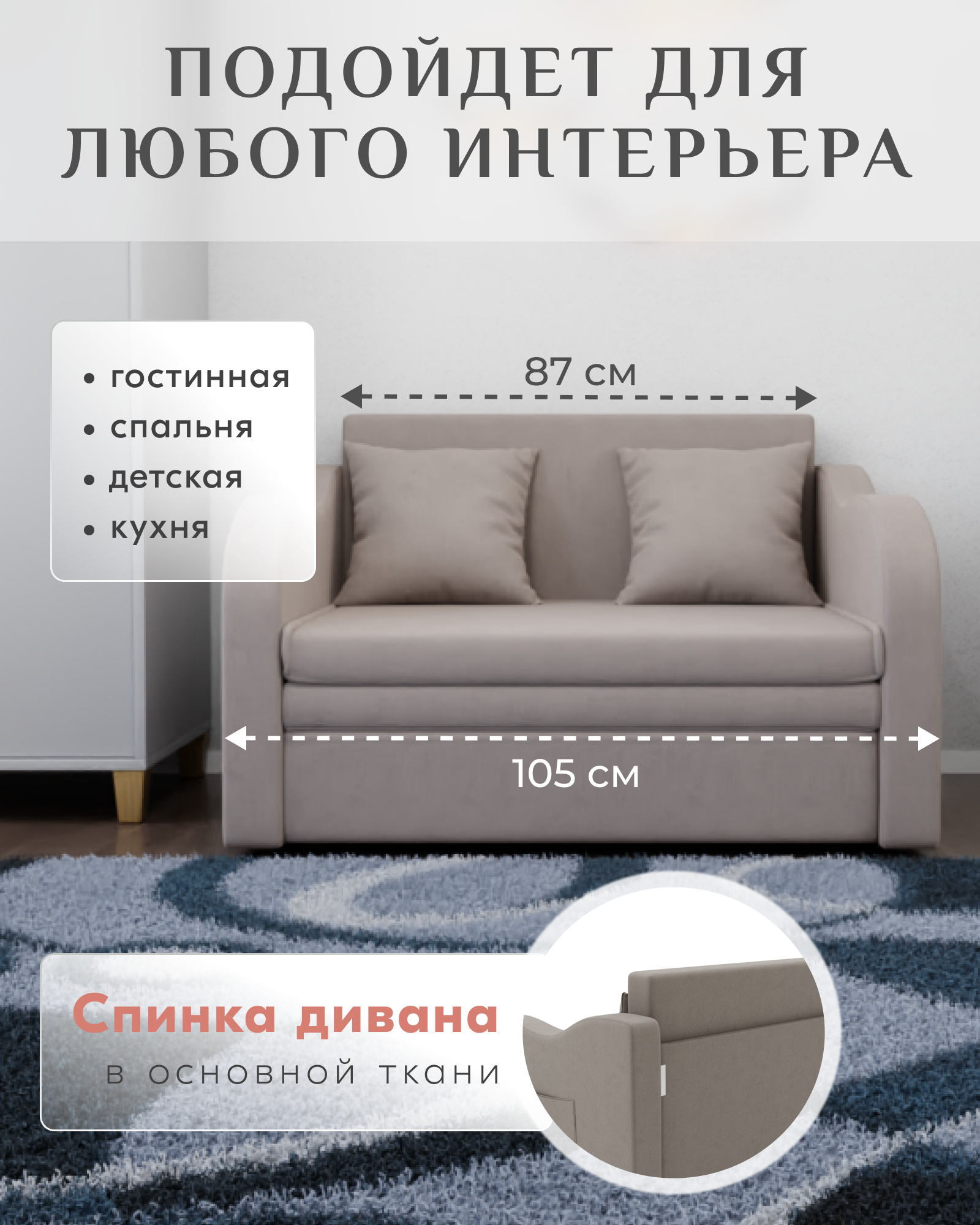 10 цен на Диван Бали прямой, размеры 105x75x87 см, Велютта люкс 07. Бежевый, велюр.