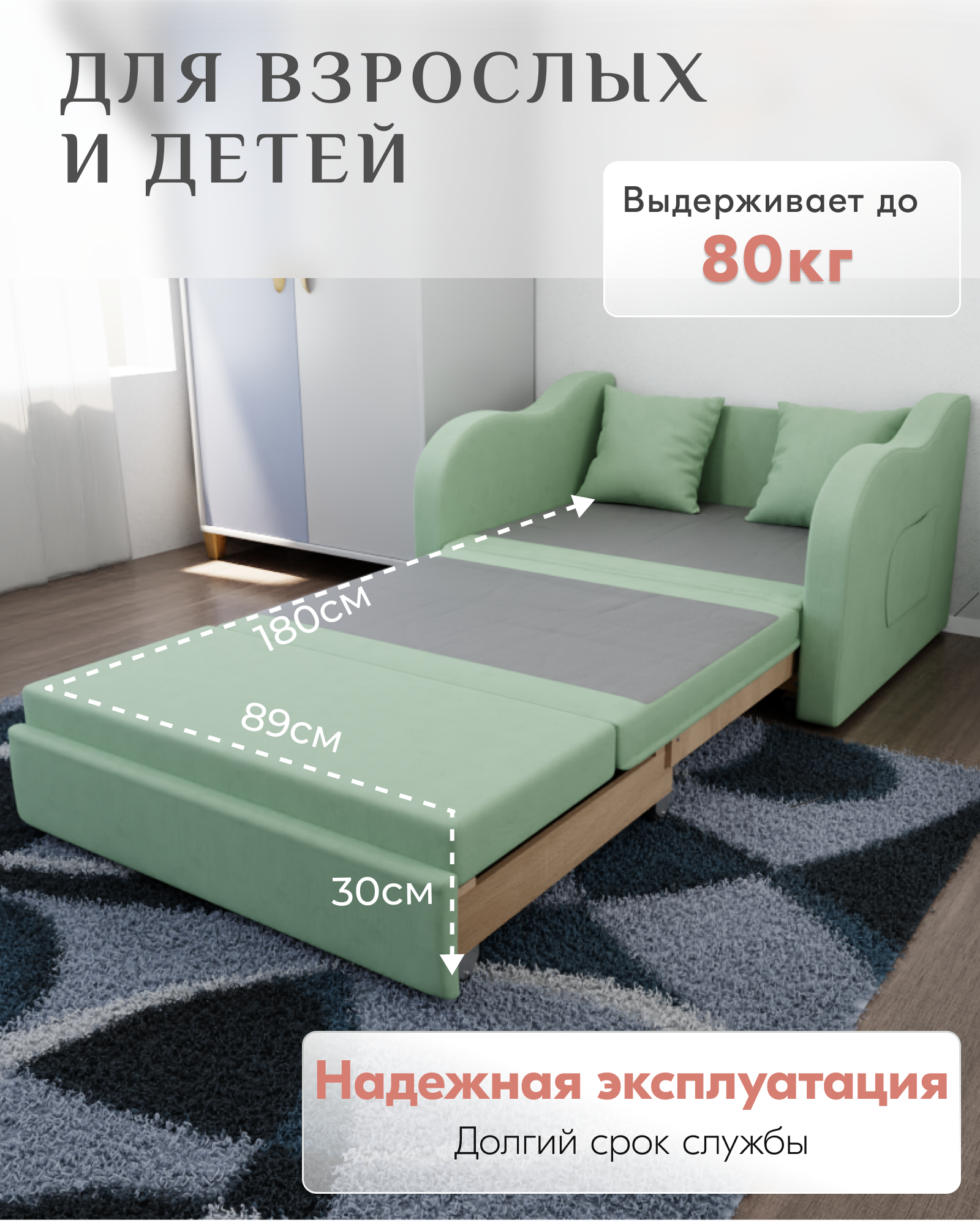 Диван Бали прямой, размеры 105x75x87 см, Велютта люкс 42. Светло-зеленый. 24 454 ₽