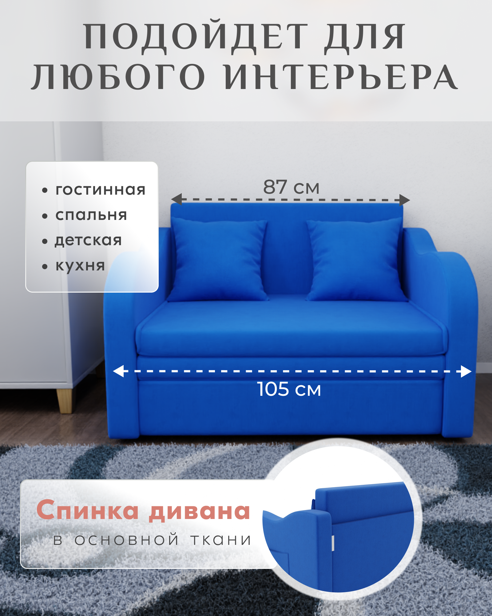 10 цен на Диван Бали прямой, размеры 105x75x87 см, Велютта люкс 45. Голубой, велюр.