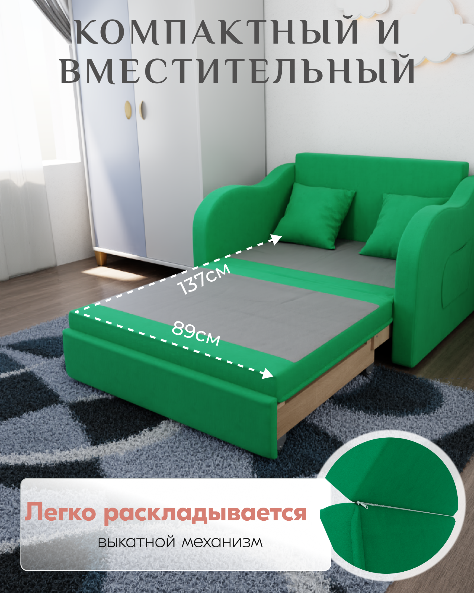 Диван Бали прямой, размеры 105x75x87 см, Велютта люкс 42. Светло-зеленый. информация: