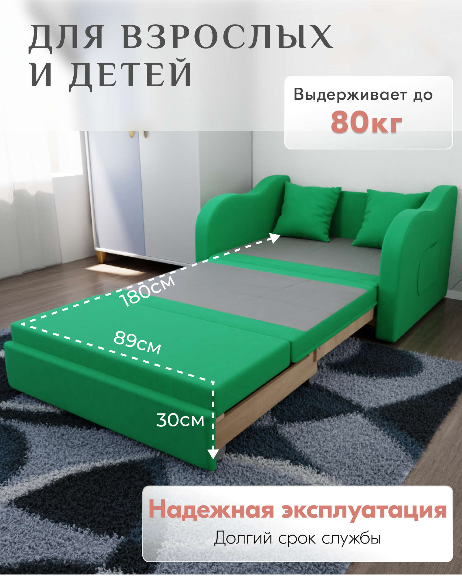 Отзывы на Диван Бали прямой, размеры 105x75x87 см, Велютта люкс 42. Светло-зеленый.