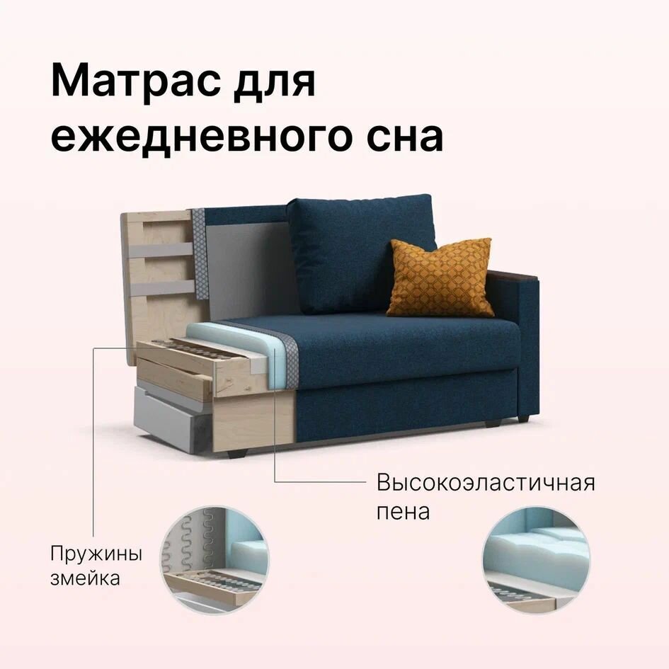 Отзывы на Диван-кровать Атланта-2 Лайт, с ящиком для хранения, еврософа, рогожка Malmo синий, 155х95х89 см