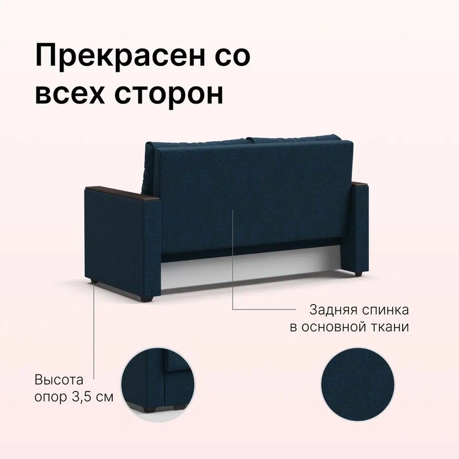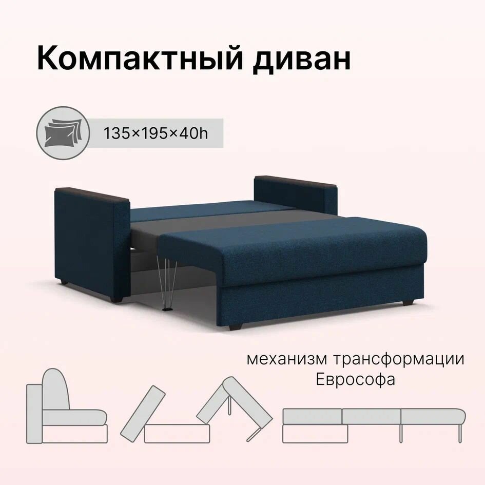 10 цен на Диван-кровать Атланта-2 Лайт, с ящиком для хранения, еврософа, рогожка Malmo синий, 155х95х89 см