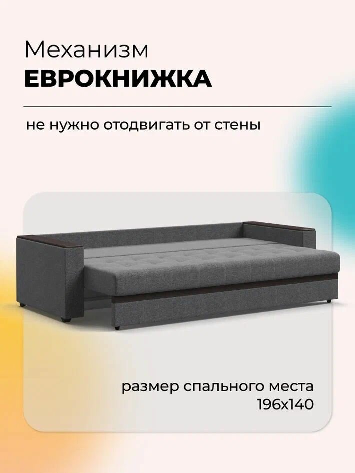 Прямой диван-кровать с ящиком для хранения Атланта 2.0 НПБ, еврокнижка, рогожка Malmo серый, 235х105х87 см информация: