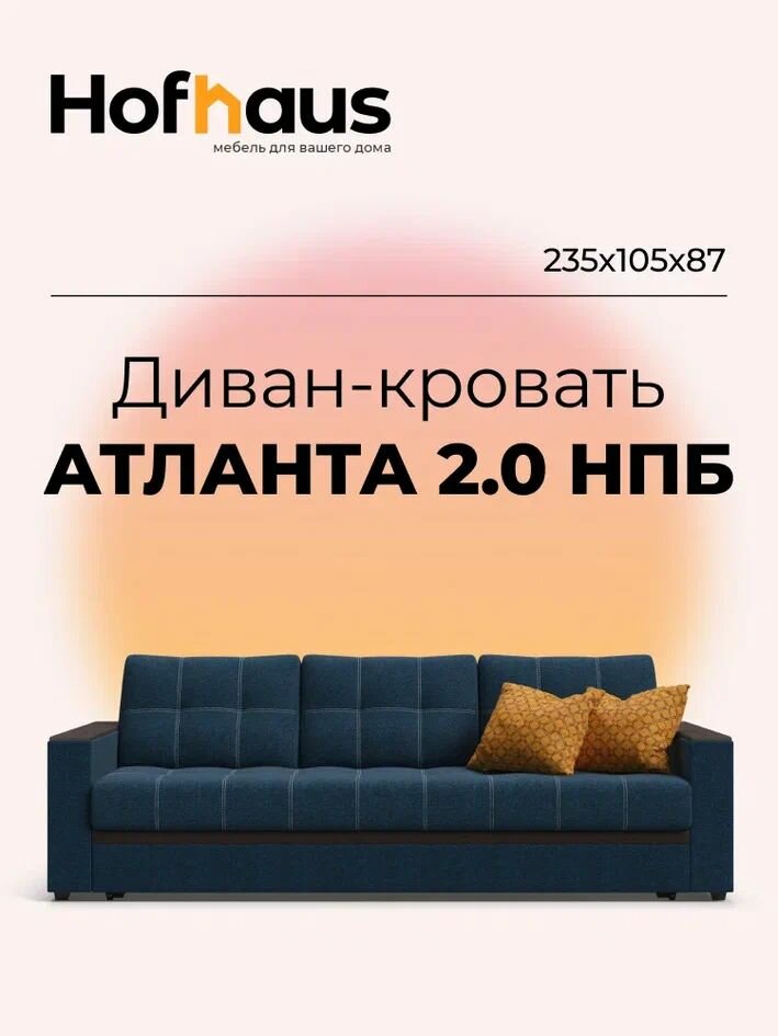 Отзывы на Прямой диван-кровать с ящиком для хранения Атланта 2.0 НПБ, еврокнижка, рогожка Malmo синий, 235х105х87 см