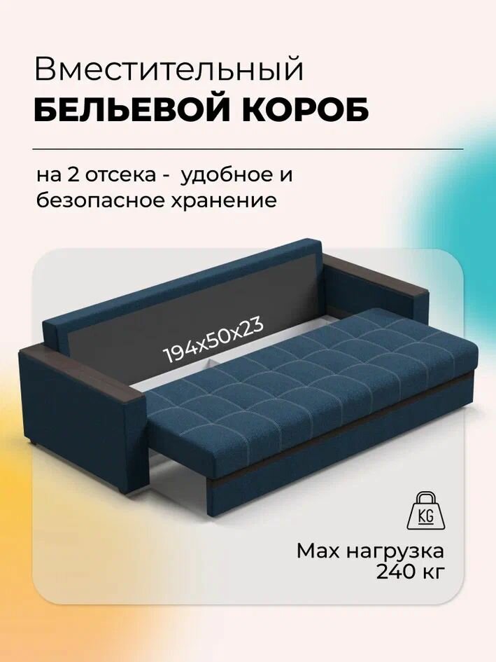 10 цен на Прямой диван-кровать с ящиком для хранения Атланта 2.0 НПБ, еврокнижка, рогожка Malmo синий, 235х105х87 см