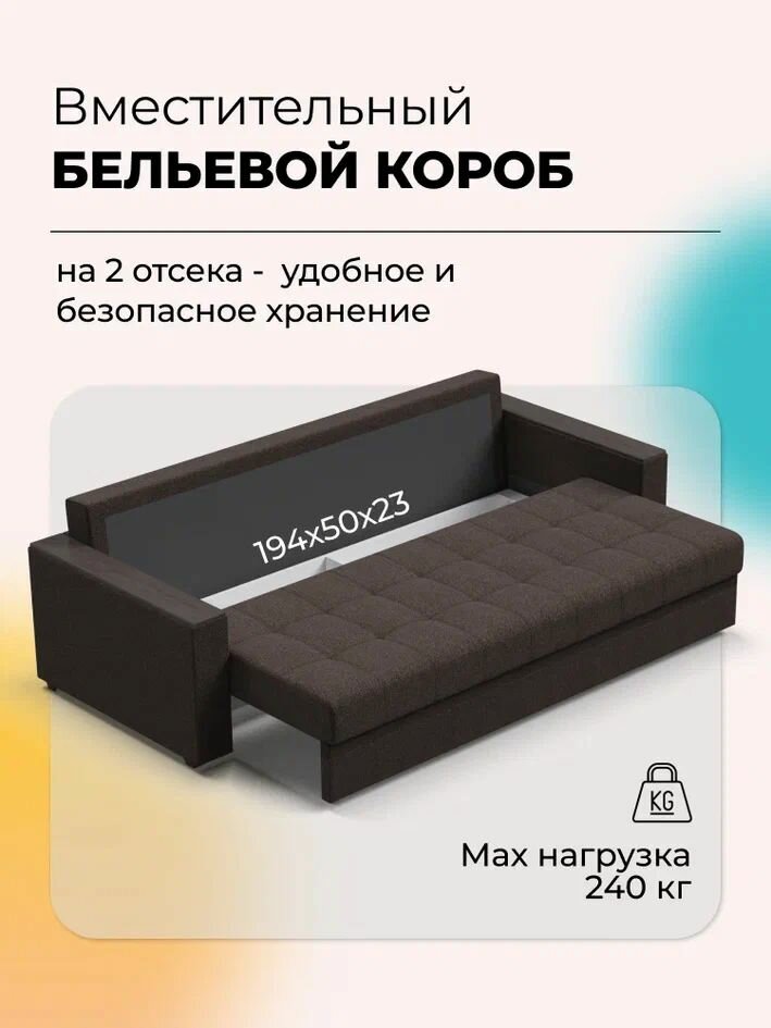 Отзывы на Прямой диван-кровать с ящиком для хранения Атланта 2.0 НПБ, еврокнижка, рогожка Malmo шоколад, 235х105х87 см