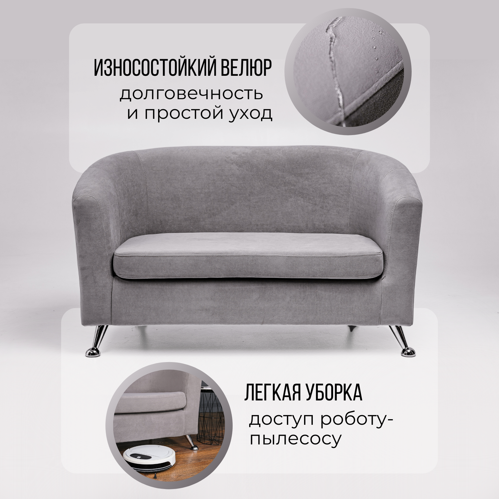 10 цен на Диван прямой двухместный Brendoss 601 кушетка для отдыха, офиса и салона, материал износостойкий велюр, серый