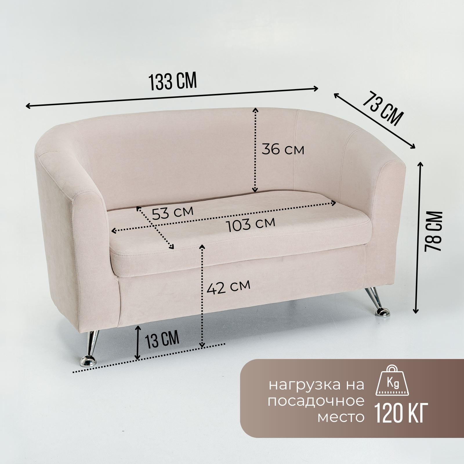 Диван прямой двухместный Brendoss 601 кушетка для отдыха, офиса и салона, материал износостойкий велюр, бежевый информация: