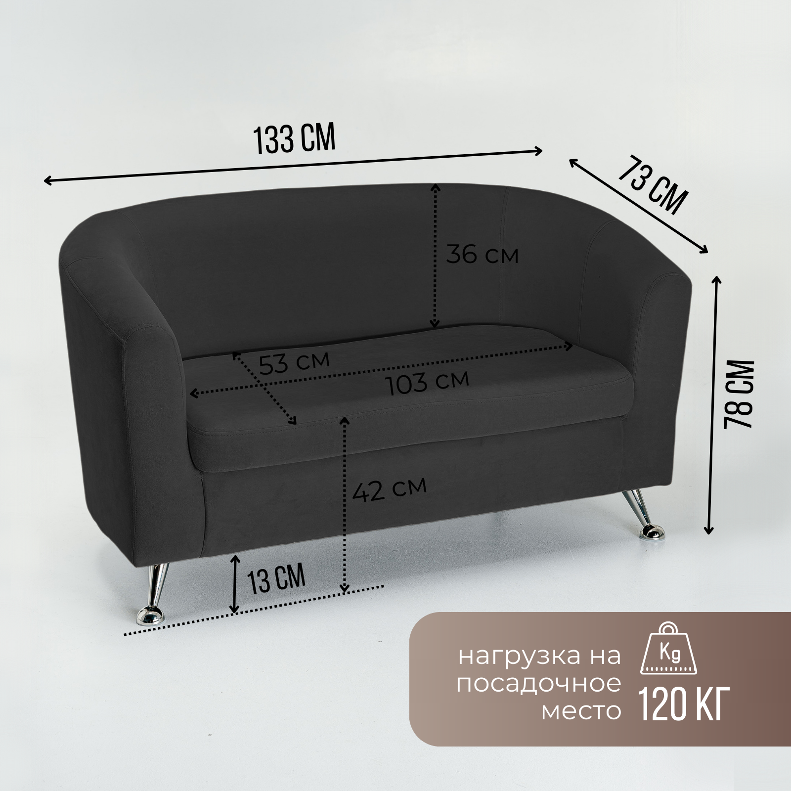 Диван прямой двухместный Brendoss 601 кушетка для отдыха, офиса и салона, материал износостойкий велюр, графит информация: