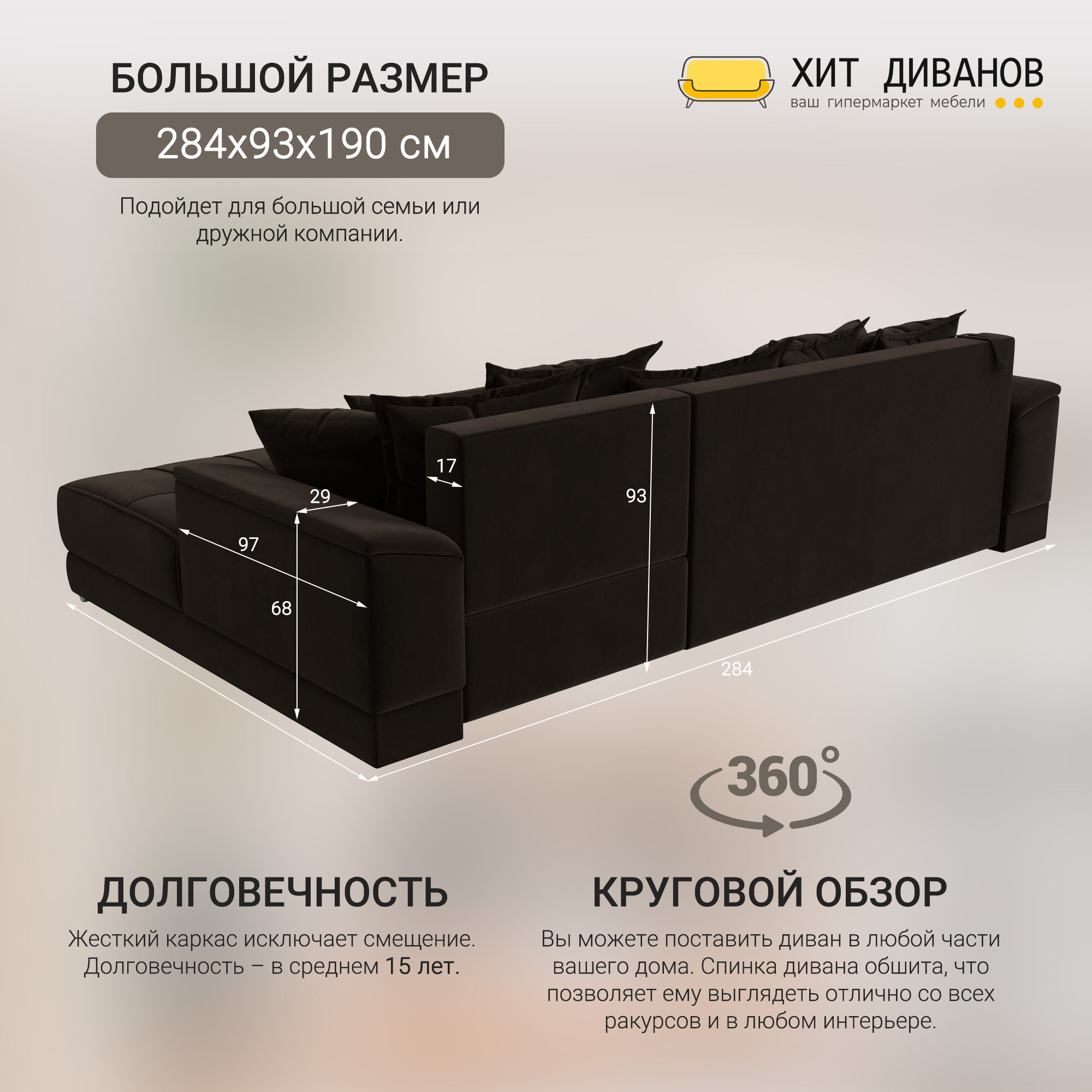 Диван угловой НордСтар правый угол, микровельвет, механизм еврокнижка, коричневый, 284x190x93см. Хит Диванов информация:
