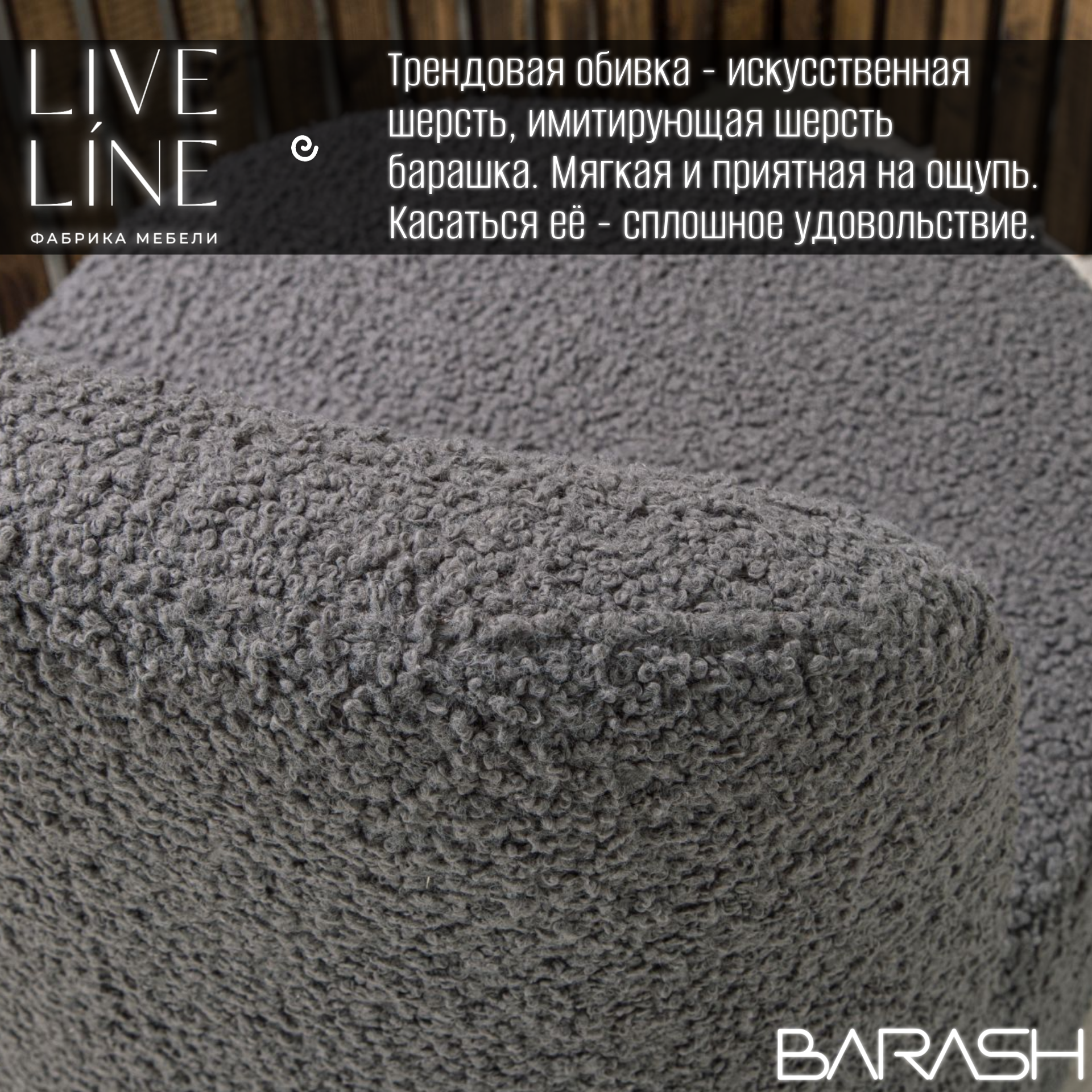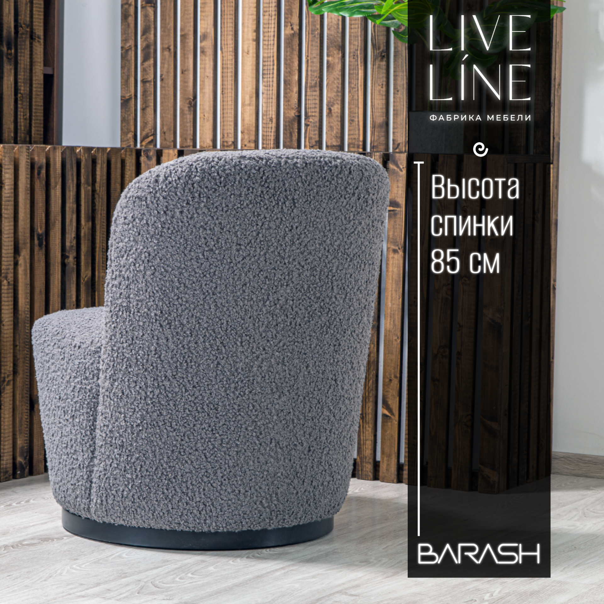 Кресло Live Line "Barash" графит Букле 65х65х85см, на поворотном механизме информация: