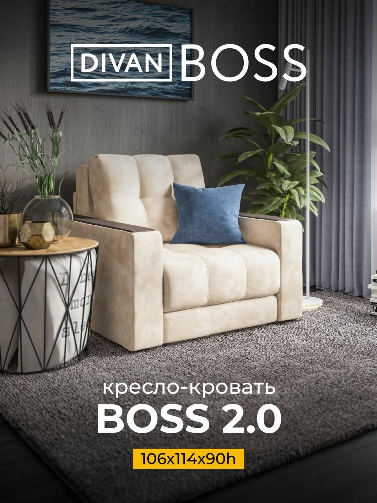 Кресло-кровать раскладное BOSS 2.0, механизм easy roll, велюр Monolit латте, 106х114х90 см 21 611 ₽