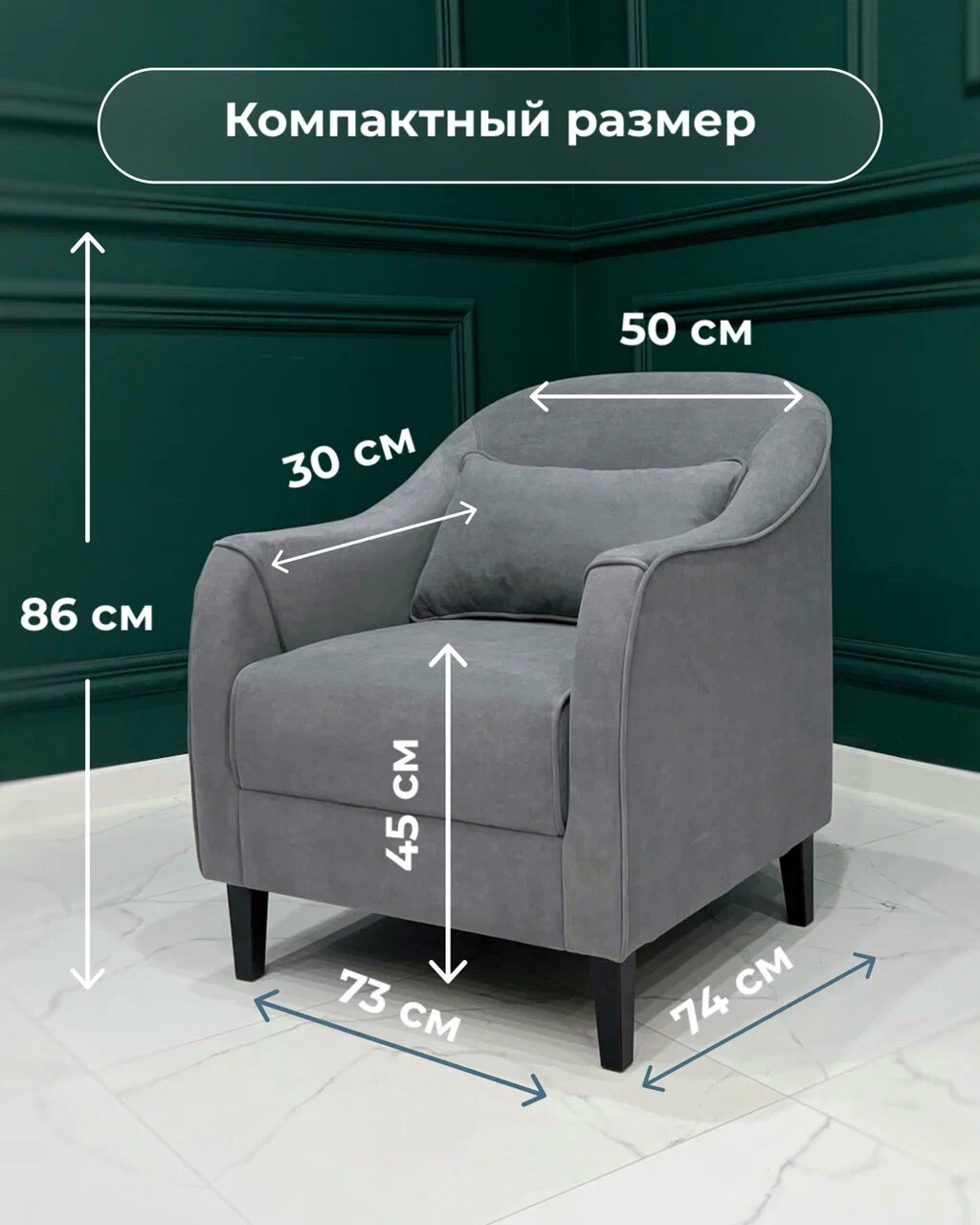 10 цен на МФ Ульяна Кресло мягкое Зиппи темно-серое для отдыха дома с декоративной подушкой высокие ножки велюр