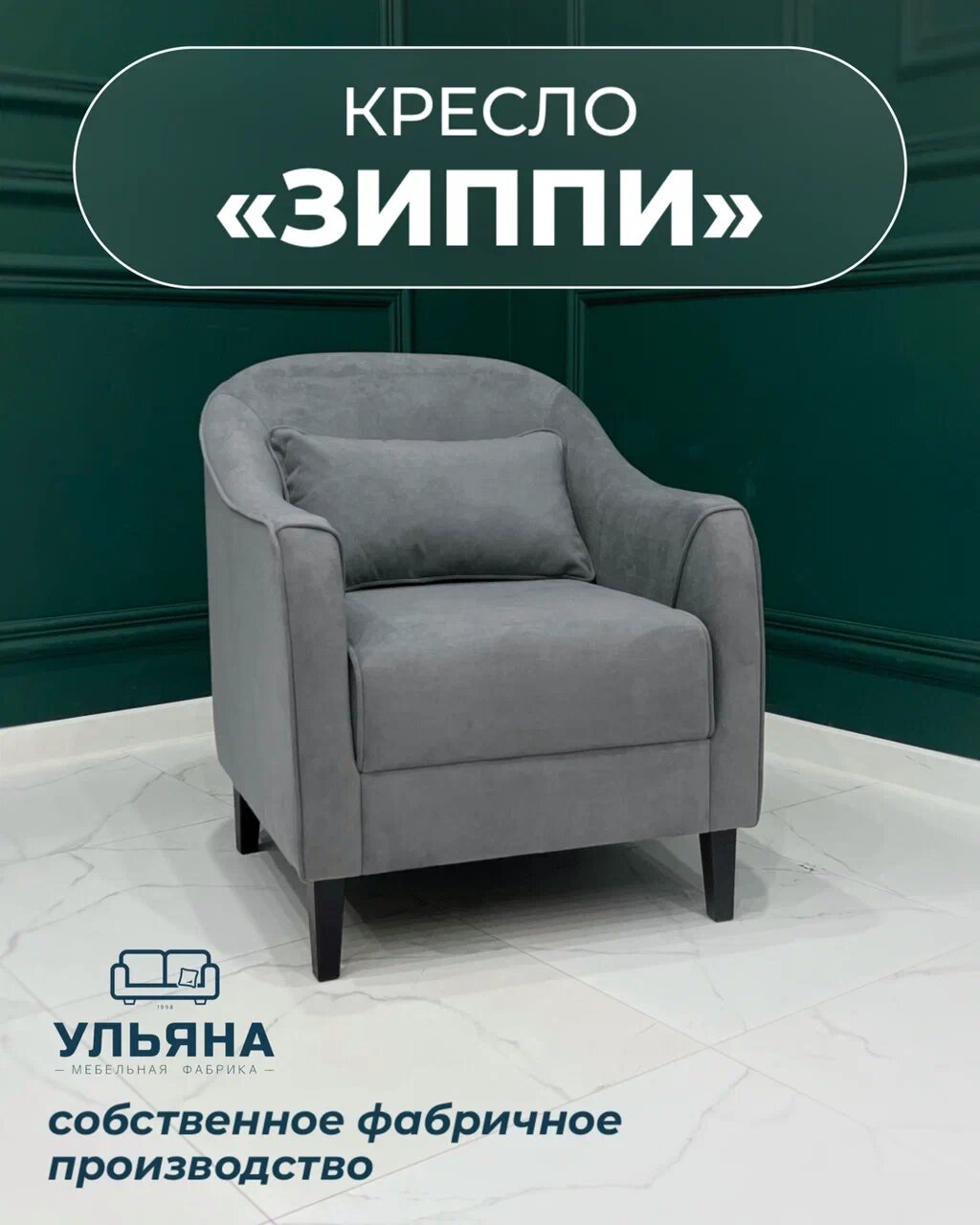 Отзывы на МФ Ульяна Кресло мягкое Зиппи темно-серое для отдыха дома с декоративной подушкой высокие ножки велюр