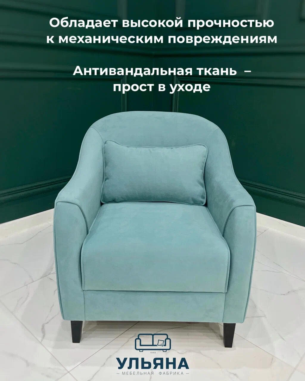 Отзывы на МФ Ульяна Кресло мягкое Зиппи бирюзовое для отдыха дома с декоративной подушкой высокие ножки велюр
