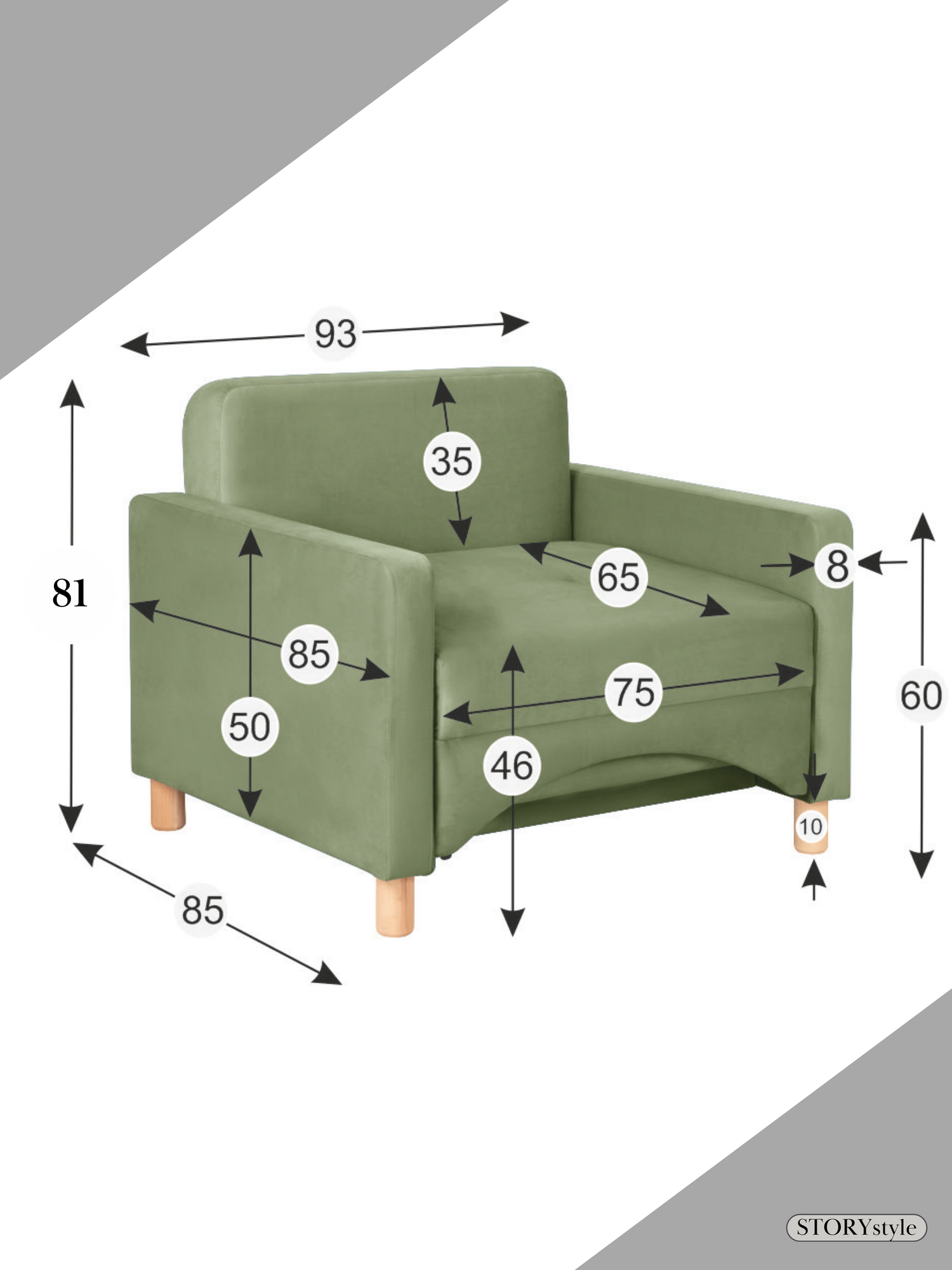 Кресло-кровать Лайк, 93*85*81, на пружинном блоке, велюр оливковый, Велутто 69 информация: