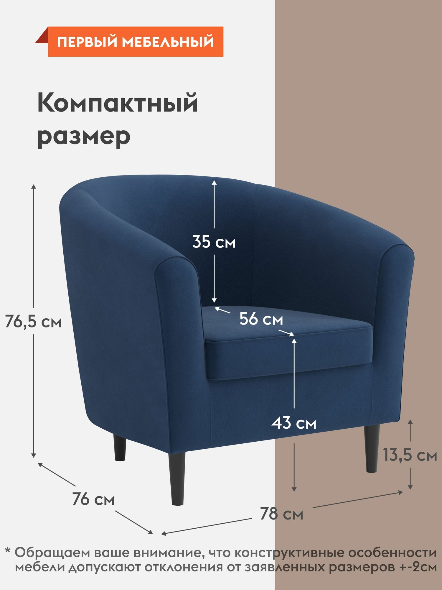 Отзывы на Кресло мягкое Элен для отдыха дома, на высоких ножках, 78х76х76.5 см, Синий велюр