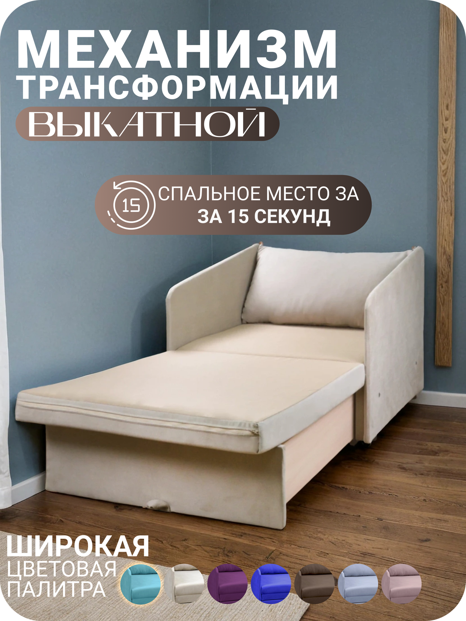 Кресло кровать раскладное с подушкой Сверчок Бежевый 191х71 Спальное место 15 672 ₽