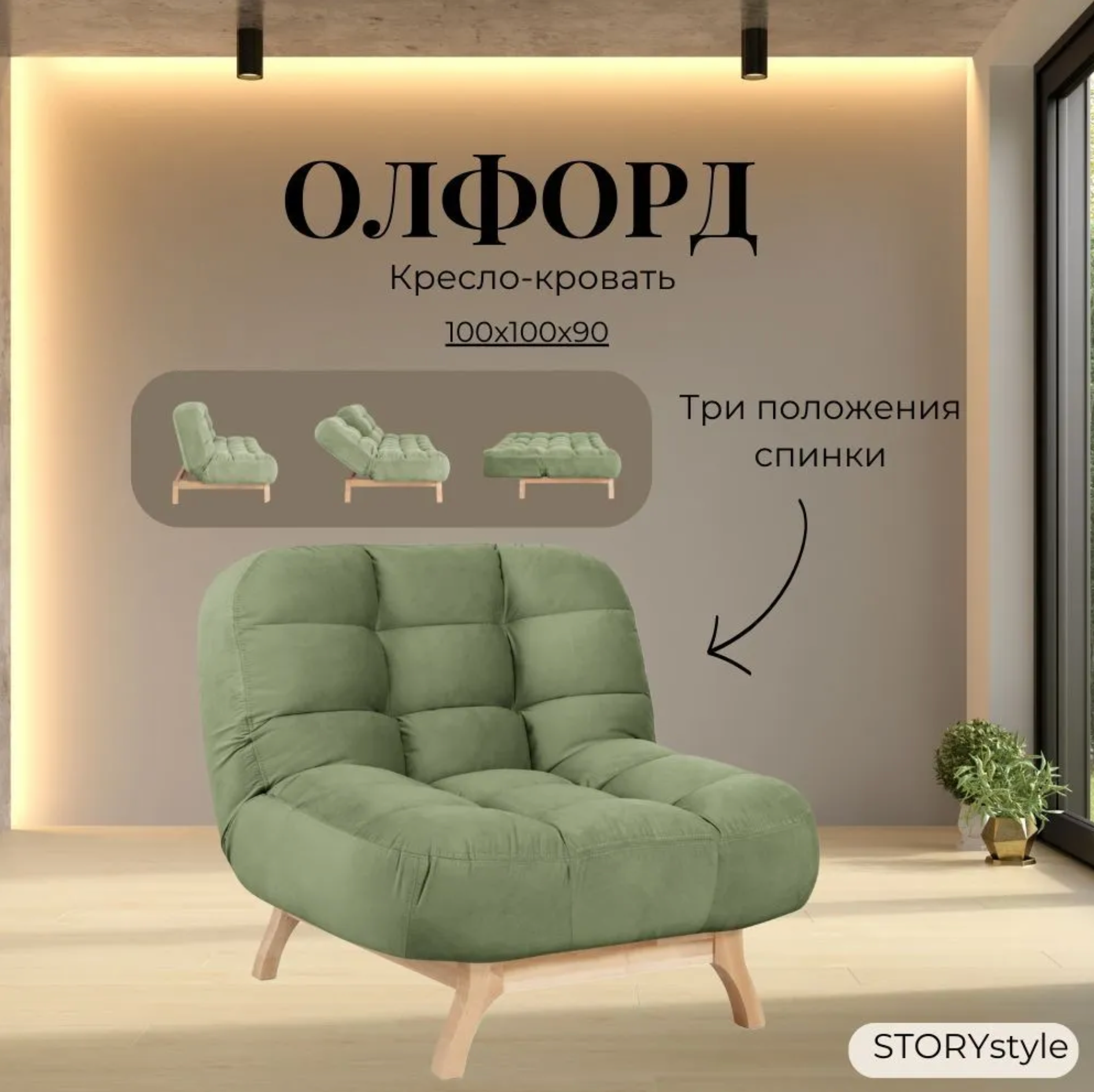 Отзывы на Кресло-кровать Олфорд, 100х100х90 см, велюр оливковый, велутто 69