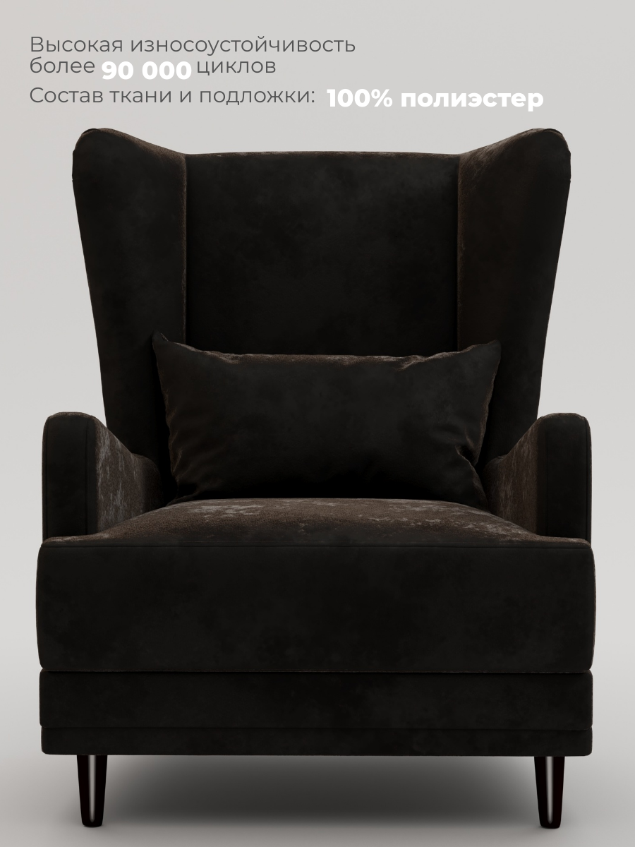 Кресло Марсель фабрика W&B, для дома, Плюш 18, Цвет кресла: черно-серый 12 490 ₽