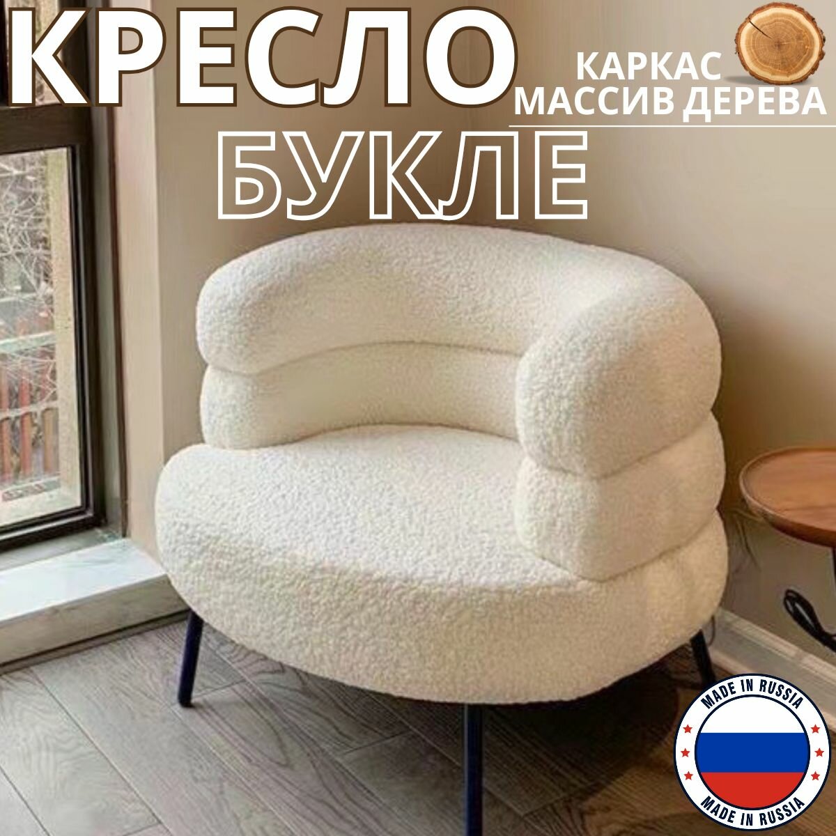 Белое круглое кресло из букле с регулируемыми ножками и металлическим каркасом для уюта в гостиной и спальне информация: