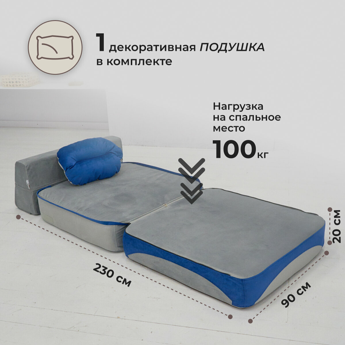 10 цен на Кресло кровать раскладное, бескаркасное 90*95 см с матрасом Клиффорд, спальное место 90*230 см, синее с серым