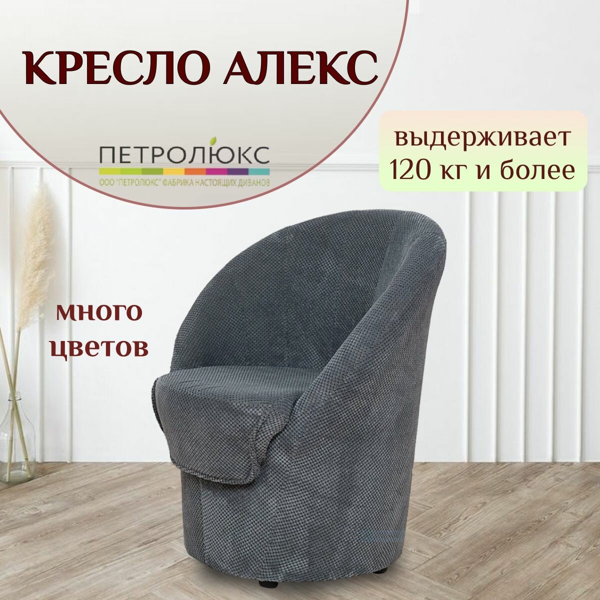 Кресло Алекс серый плюш информация:
