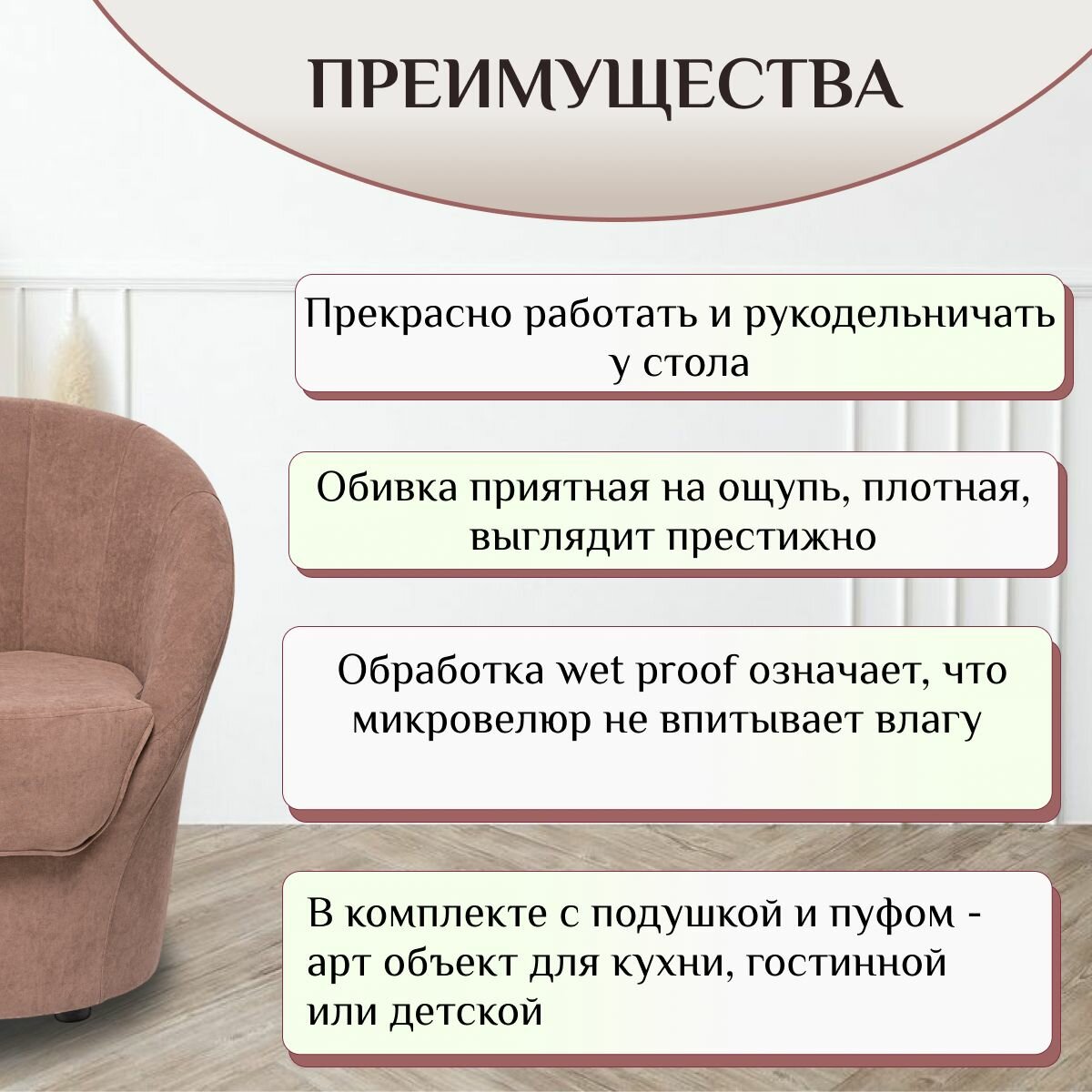 Кресло лофт мягкое удобное для отдыха, уличное, на балкон, на веранду, во двор, в баню, Комфи ++ велюр молочный