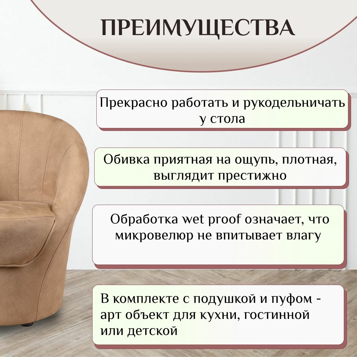 Кресло лофт мягкое удобное для отдыха, уличное, на балкон, на веранду, во двор, в баню, Комфи ++ велюр молочный