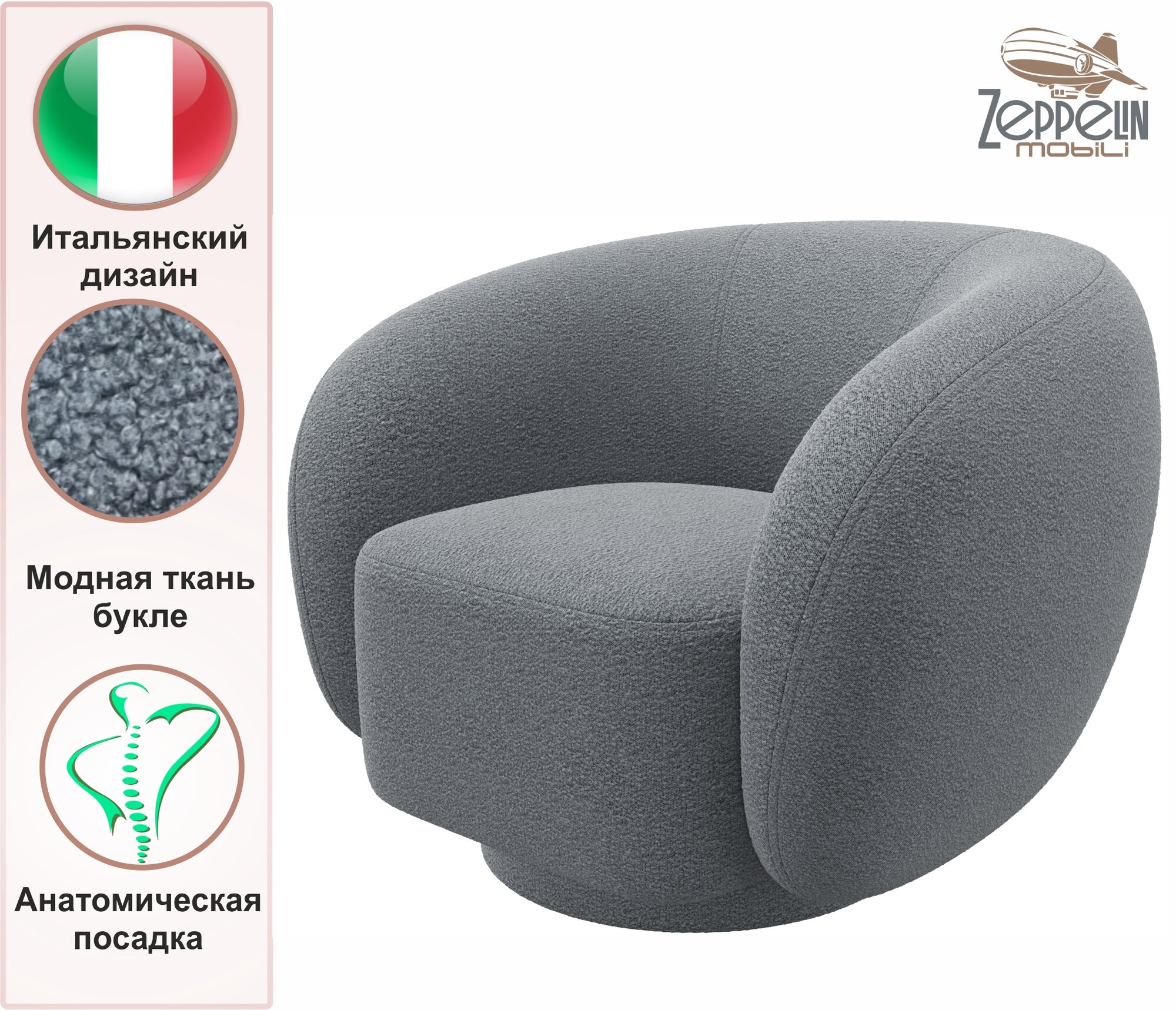 Отзывы на Кресло мягкое дизайнерское Plushe букле базальт Zeppelin, из ткани букле для дома и офиса