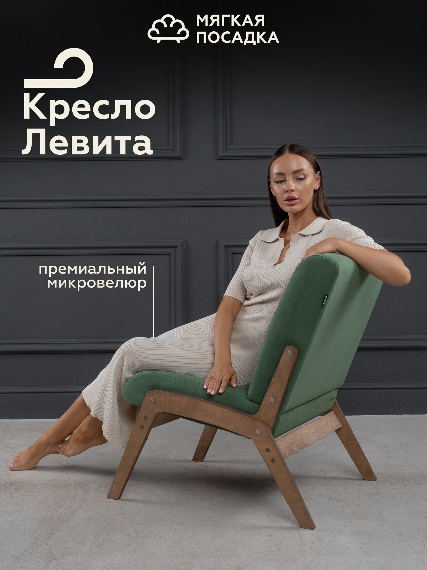 10 цен на Кресло для отдыха "ЛЕВИТА" от "Мягкой Посадки", без подлокотников, обивка зеленый велюр, 56x75х78 см