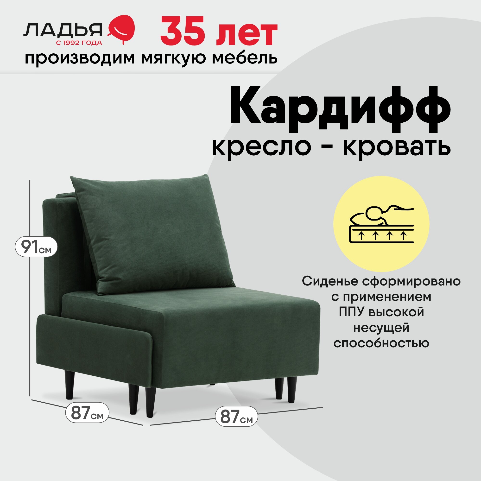 Отзывы на Кресло-кровать раскладное Кардифф 87х87х91 см, еврокнижка, Ладья, спальное место: 80х190 см, Amigo Green