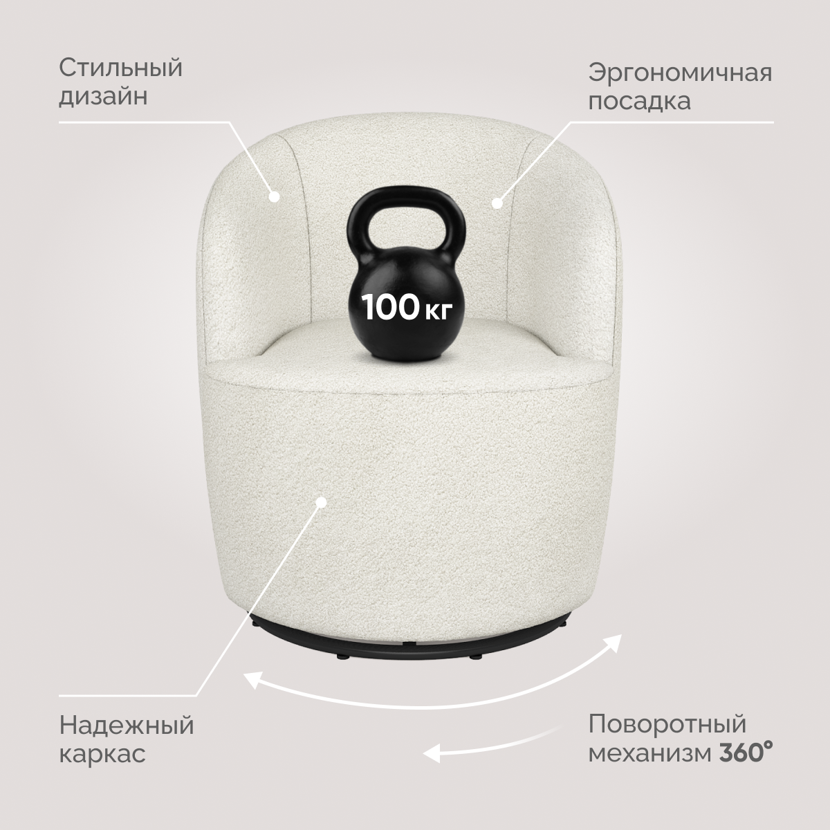 Кресло поворотное Лила Флаффи 01 (молочный), "Твой Диван", для дома информация: