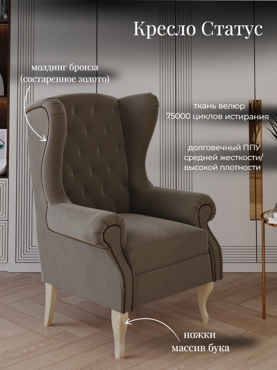 Кресло Статус 3, 1 шт, цвет: коричневый/ножки слоновая кость информация: