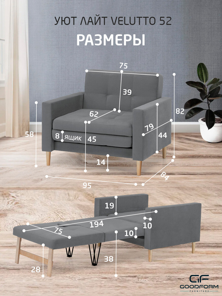 Кресло-кровать Уют Лайт Velutto 52 Выкатной 95x84x82 ФМ мебель информация: