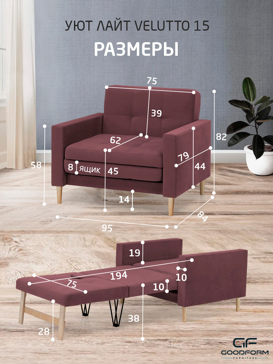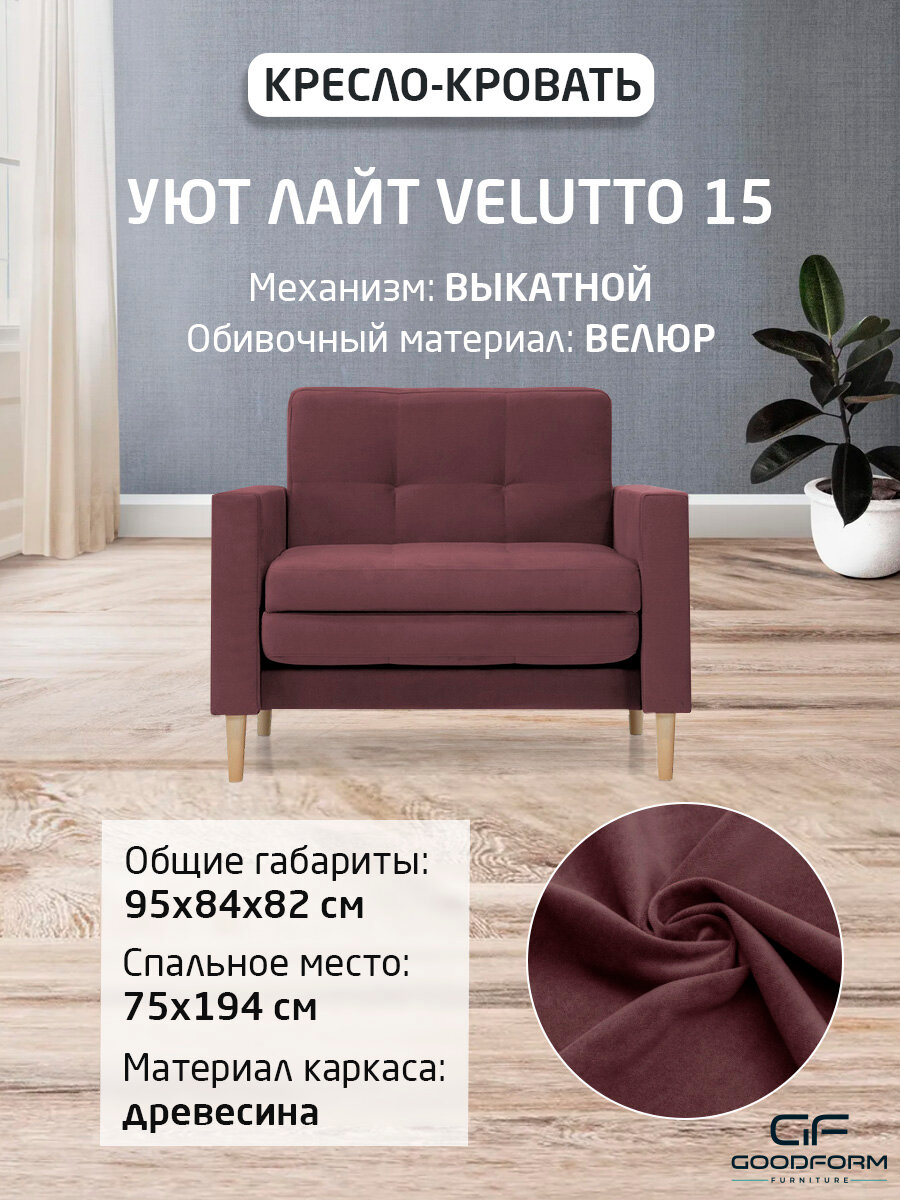 Кресло-кровать Уют Лайт Velutto 15 Выкатной 95x84x82 ФМ мебель информация:
