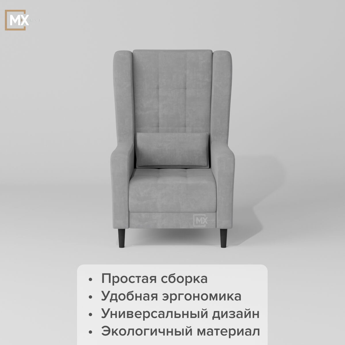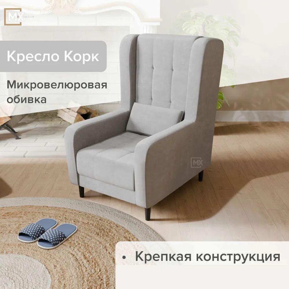 Кресло мягкое для отдыха со спинкой Корк, Светло-серое Пенополиуретан , Синтепон, Велюр, Фанера, для дома , офиса 1130х780х982, домани информация: