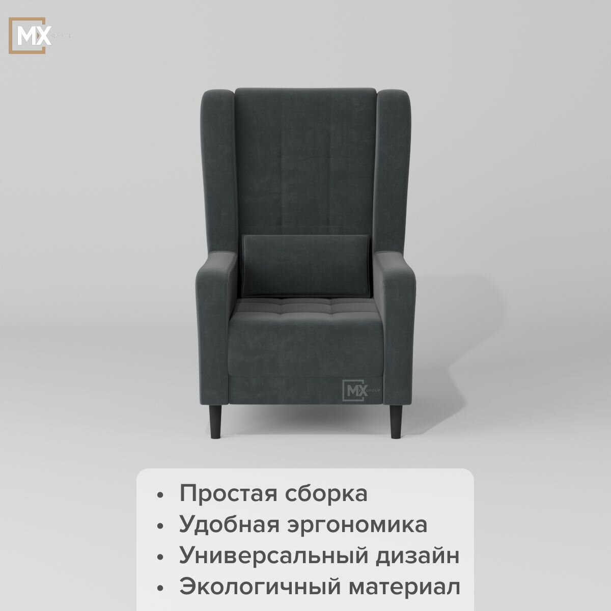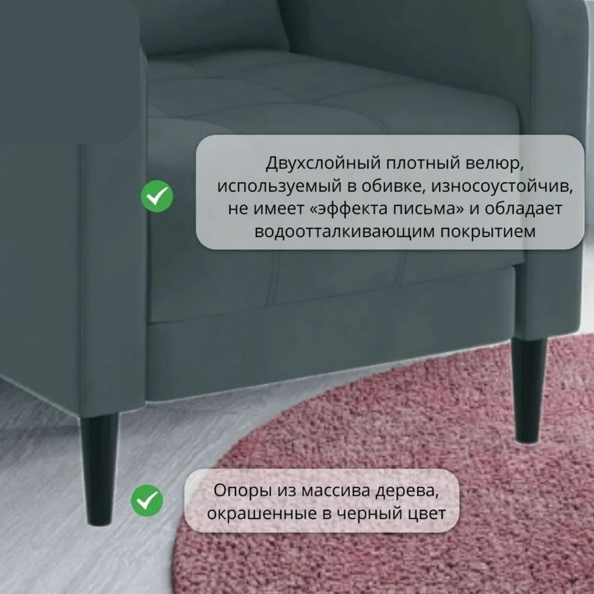 Кресло мягкое интерьерное со спинкой Корк, Серый, Пенополиуретан , Синтепон, Велюр, Фанера, для дома , офиса 1130х780х982 домани информация: