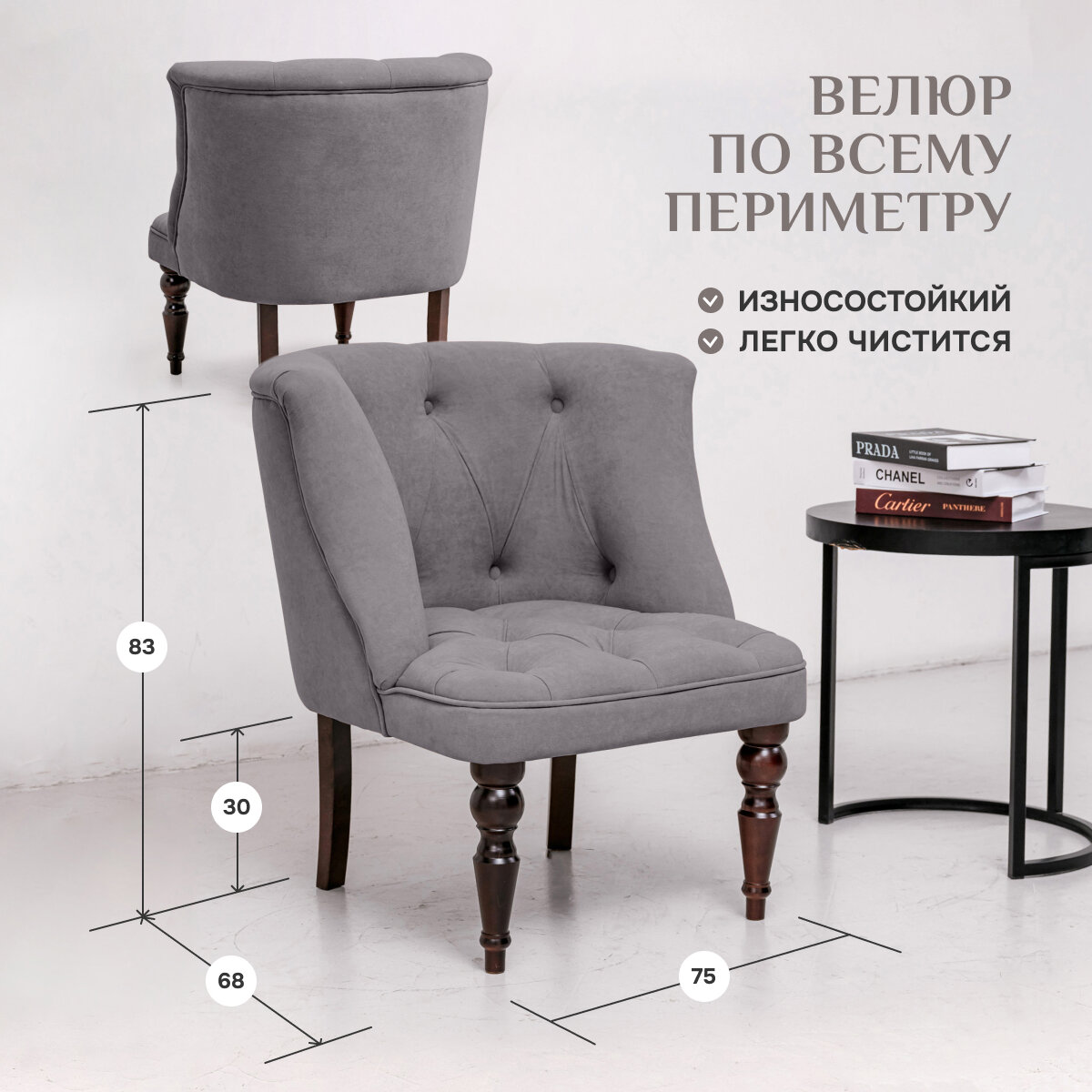 10 цен на Кресло Brendoss 207 классик для отдыха, каретная стяжка, материал износостойкий велюр, цвет серый, ножки орех