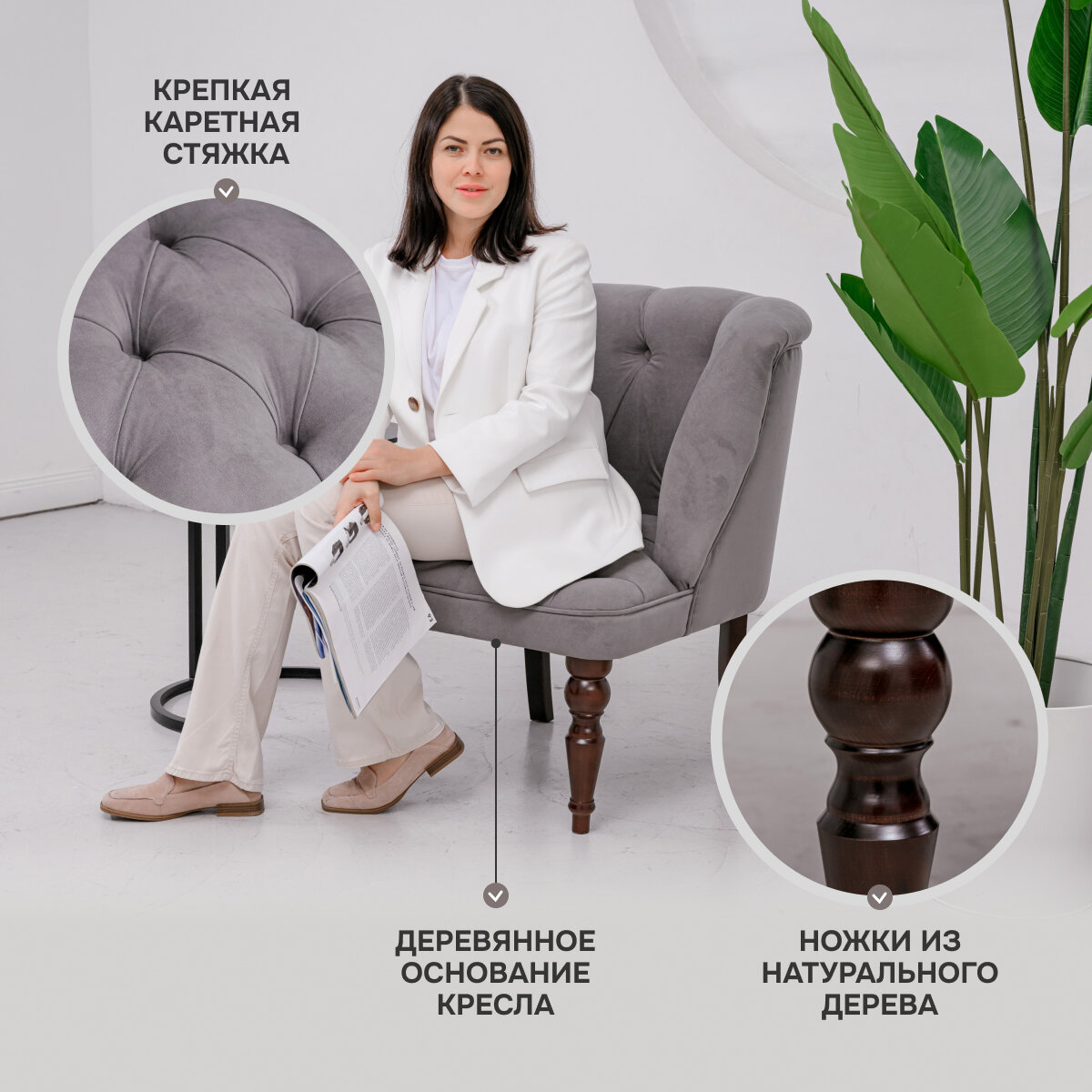 Кресло Brendoss 207 классик для отдыха, каретная стяжка, материал износостойкий велюр, цвет серый, ножки орех информация: