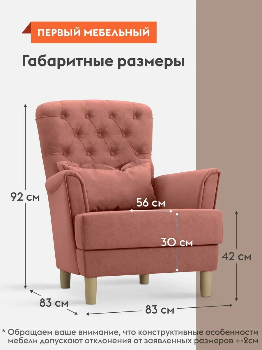 Кресло мягкое Ирис для отдыха, с высокой спинкой, 83х83х92 см, Розовый, велюр ножки массив дерево информация: