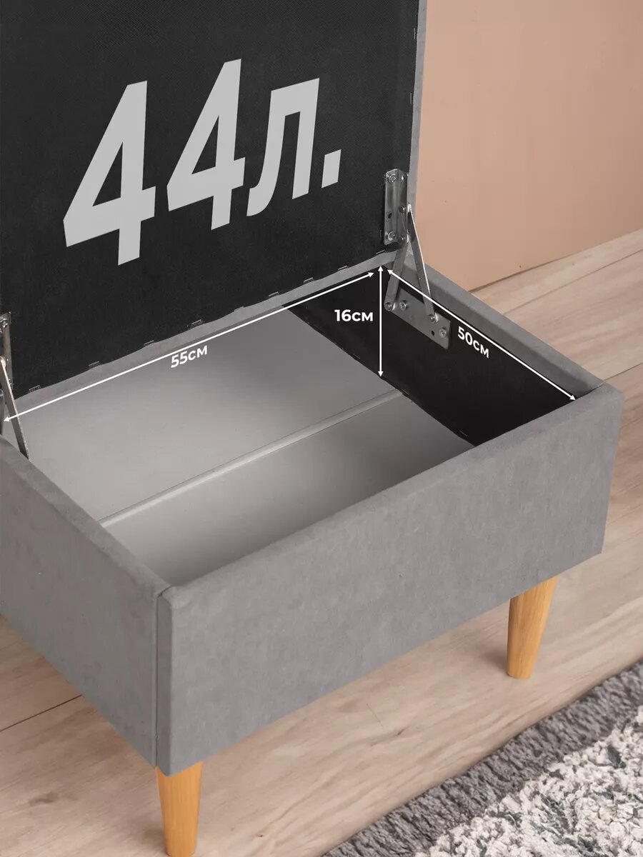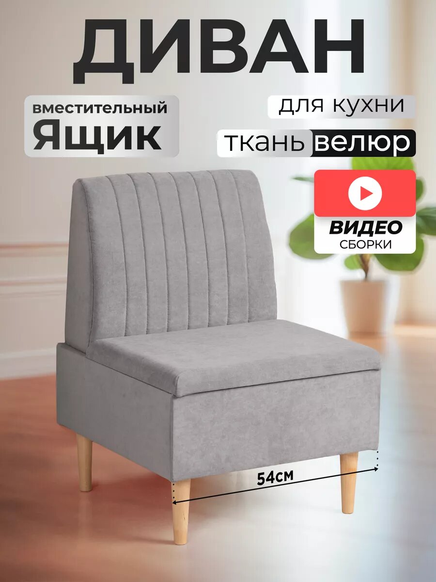 10 цен на Кресло модульное Руми, велюр, цвет серый, на ножках, с местом для хранения 60х54 см, без подлокотников